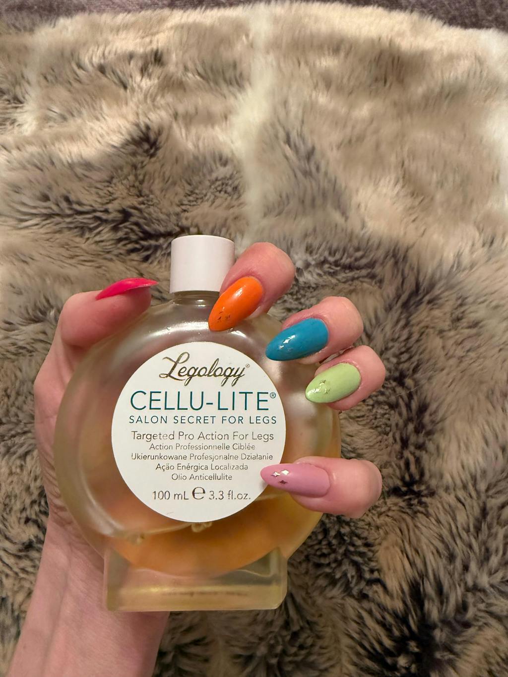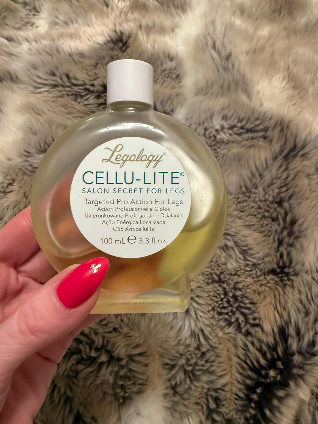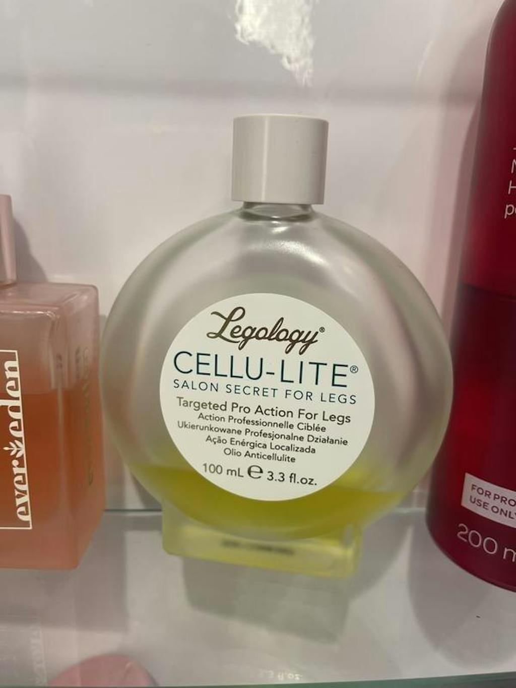 “Legology Cellu-Lite oil has helped reduce the unsightly bumps which I have on my thighs. I use after a shower, massaging in with their suction cup which creates a vacuum and helps maximise the benefits.”