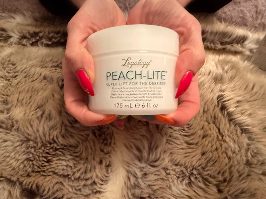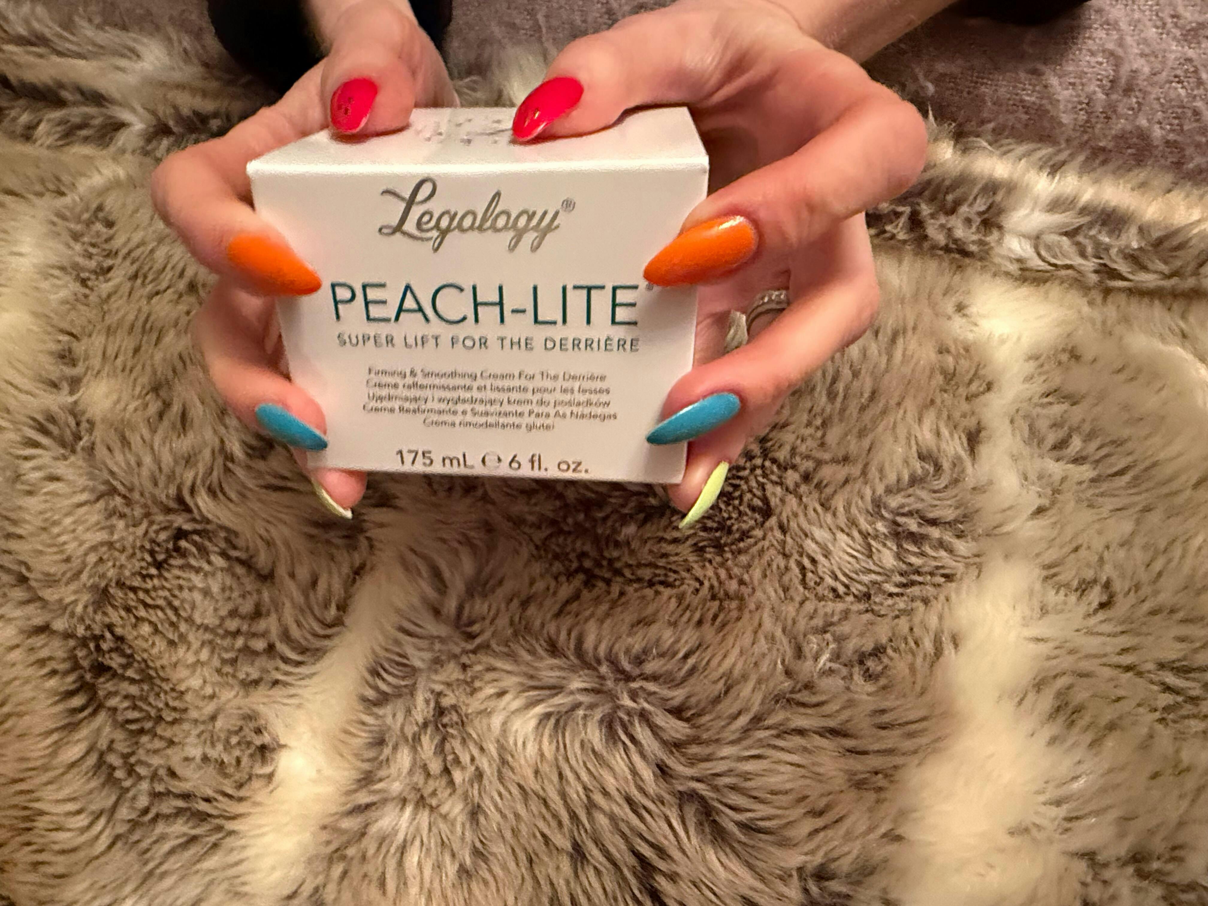 “Far and away the best results come after you’ve used a body brush, loofah or buffing cloth on your buttocks first. The tingliness and tightness are out of this world. Buff or brush in the shower, dry and immediately apply Peach-Lite”.